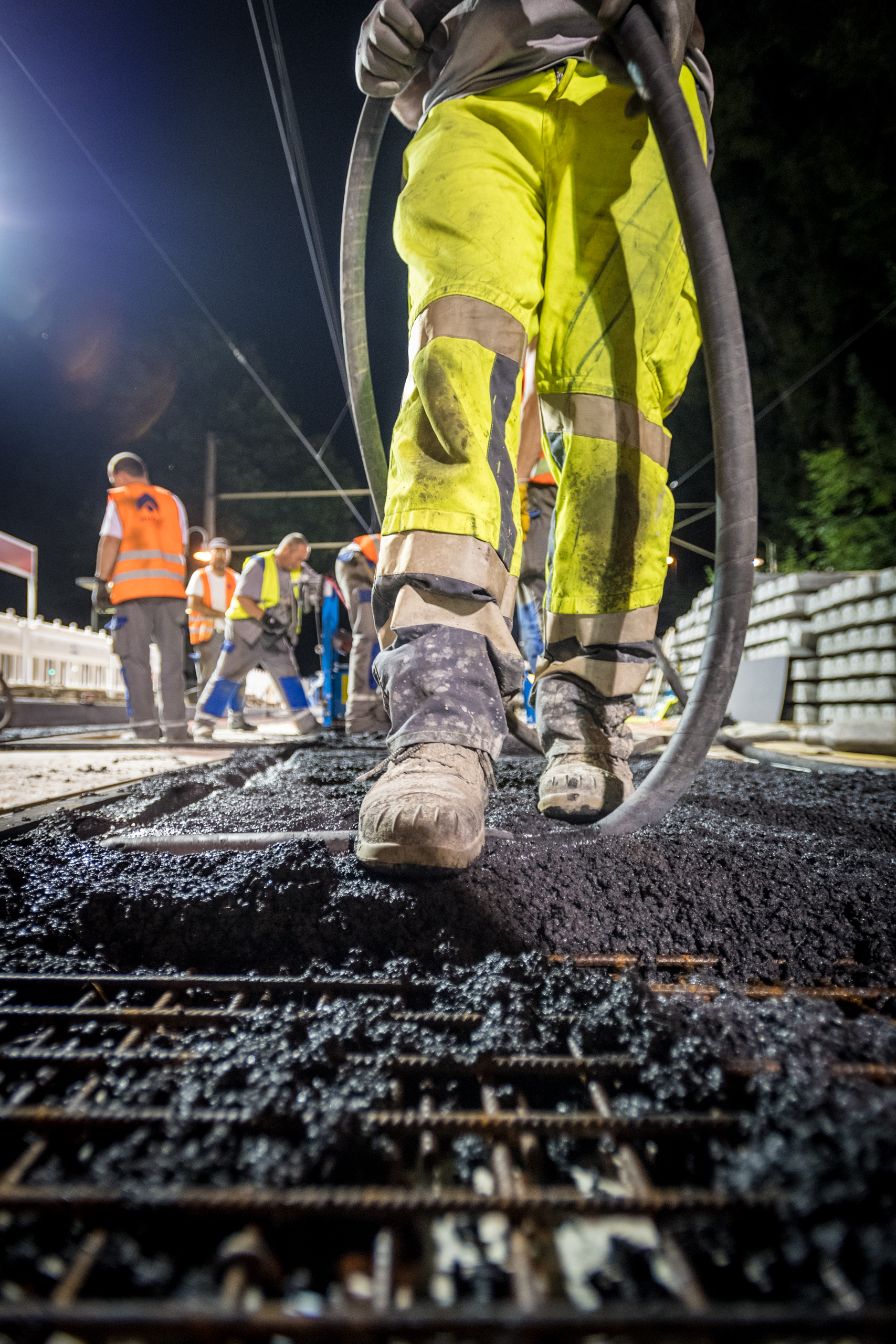 The concrete with a particularly dense microstructure has a low porosity, which results in a low water absorption coefficient. This makes the floor durable and resistant and predestines it for use in surfaces subject to chemical and high point loads. In addition, the cement content of ingbeton is extremely high, which is why it hardens quickly and thus also provides optimum properties for time-critical renovation measures of stressed surfaces - whether in public transport or in industrial plants. The industrial floor with a minimum low construction of 46 mm and surfaces with few joints can be installed on all load-bearing substrates.