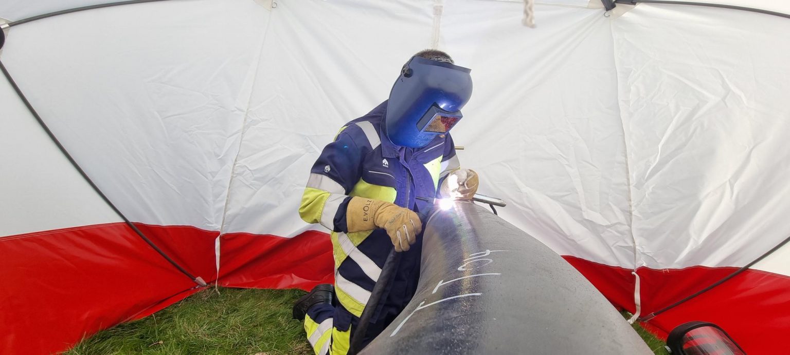 Für das WIG-Schweißen (Wolfram-Inertgas / Prozess 141), das E-Hand-Schweißen (Lichtbogenhandschweißen / Prozess 111) und kombinierte Techniken haben die Schweißerinnen und Schweißer des Augel-Rohrleitungsbauteams alle erforderlichen Verfahrensprüfungen mit Erfolg abgelegt. Seit diesem Winter hat das Unternehmen außerdem die Zulassung für unterschiedliche Verfahren des Bolzenschweißens mit Spitzenzündung. Weitere Verfahrensprüfungen befinden sich aktuell in Vorbereitung.