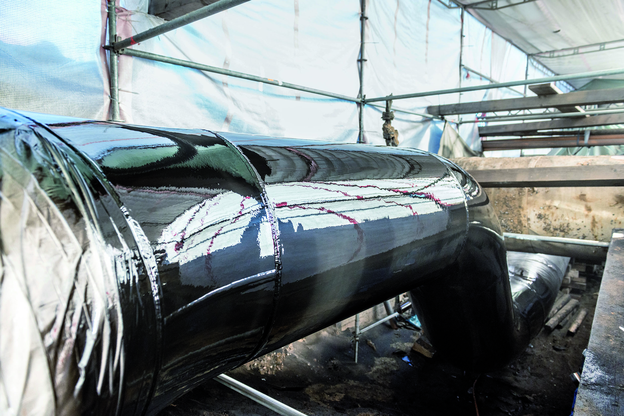 Augel ist spezialisiert im Umhüllen von Pipelines, Armaturen und Behältern mit DENSOLID®-FK2/FK2 C Polyurethanbeschichtungen.