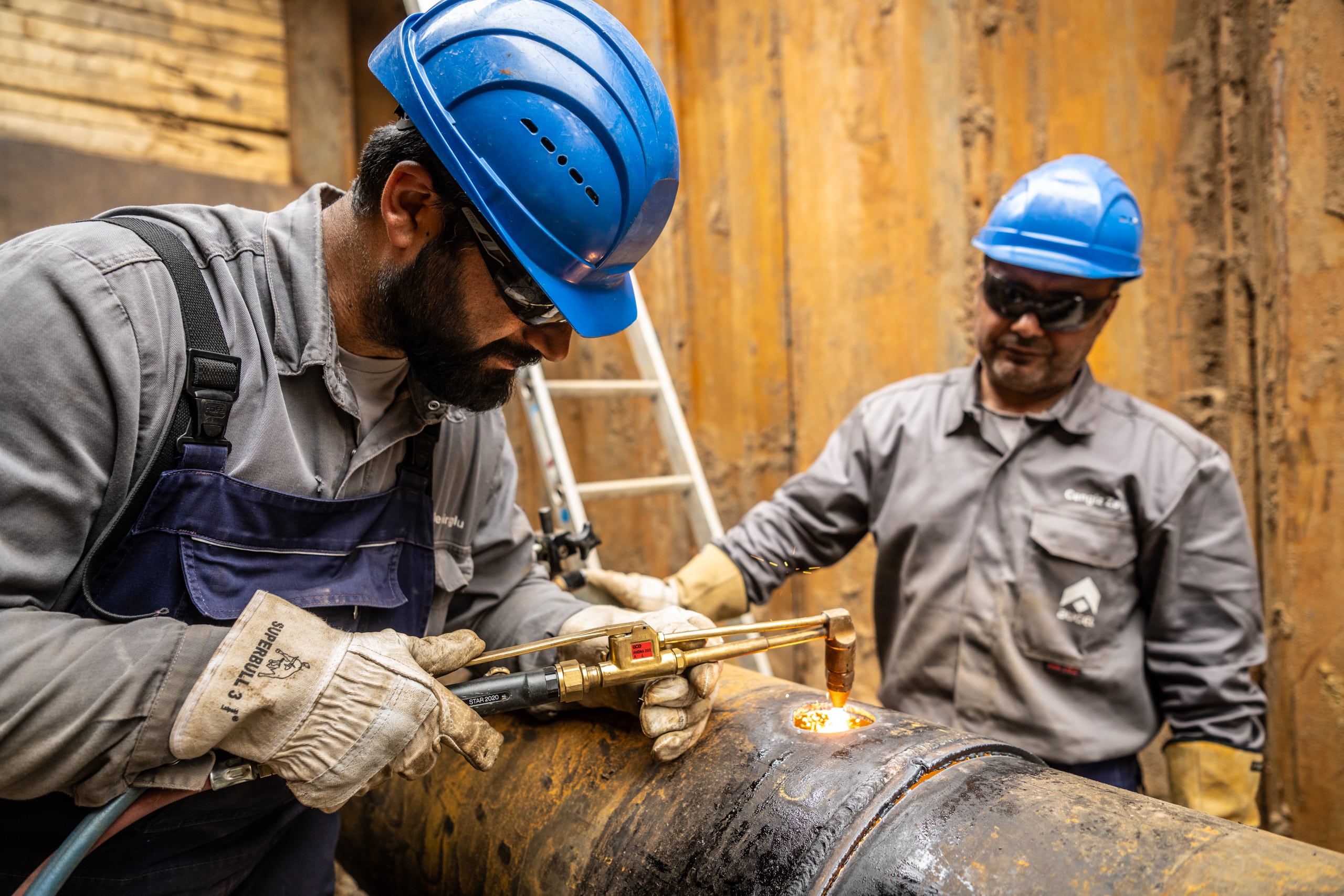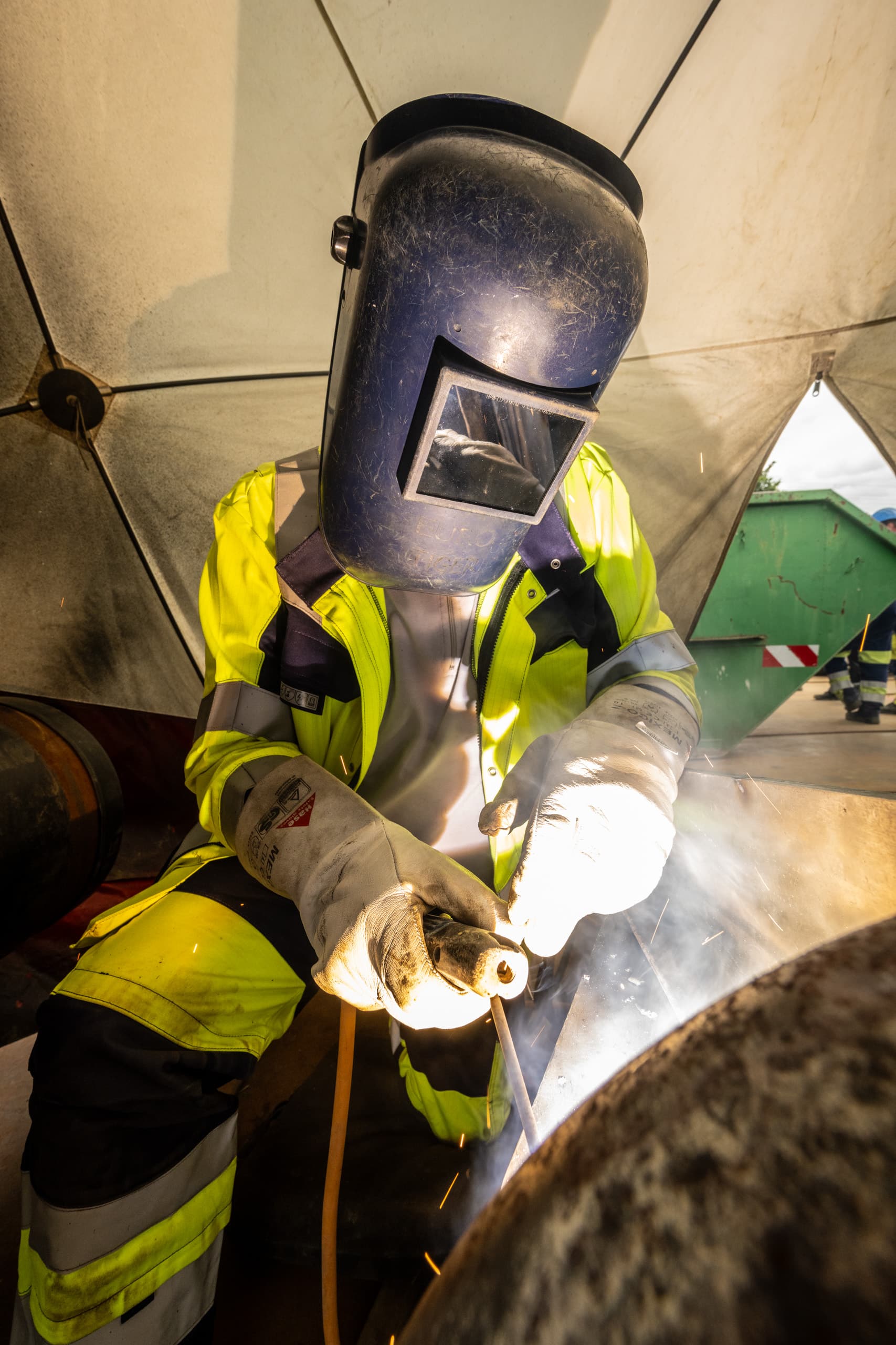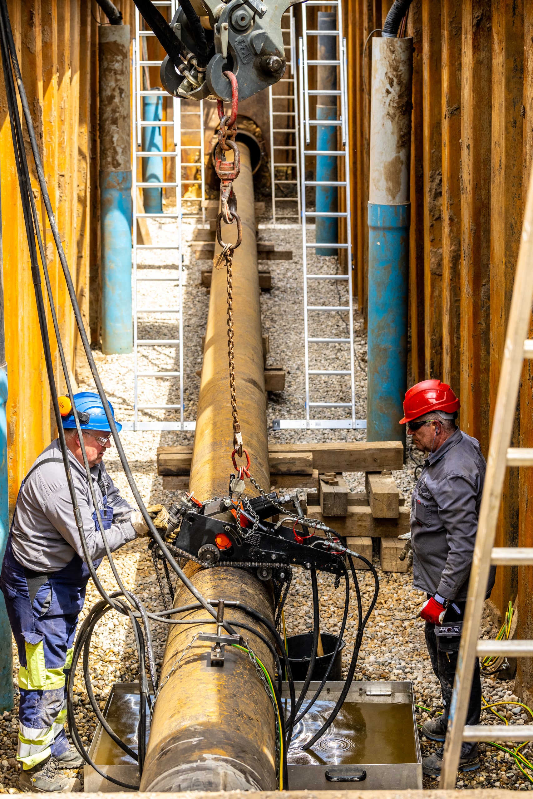 Durch die Kürzung des 87,10 m langen Mantelrohrs konnte der Arbeitsbereich optimiert werden. Für den Austausch des Abschnitts stand ein enges Zeitfenster von nur vier Tagen zur Verfügung, um die Unterbrechung des Pipelinebetriebs so kurz wie möglich zu halten. Deshalb arbeitete das Team im Zweischichtbetrieb.