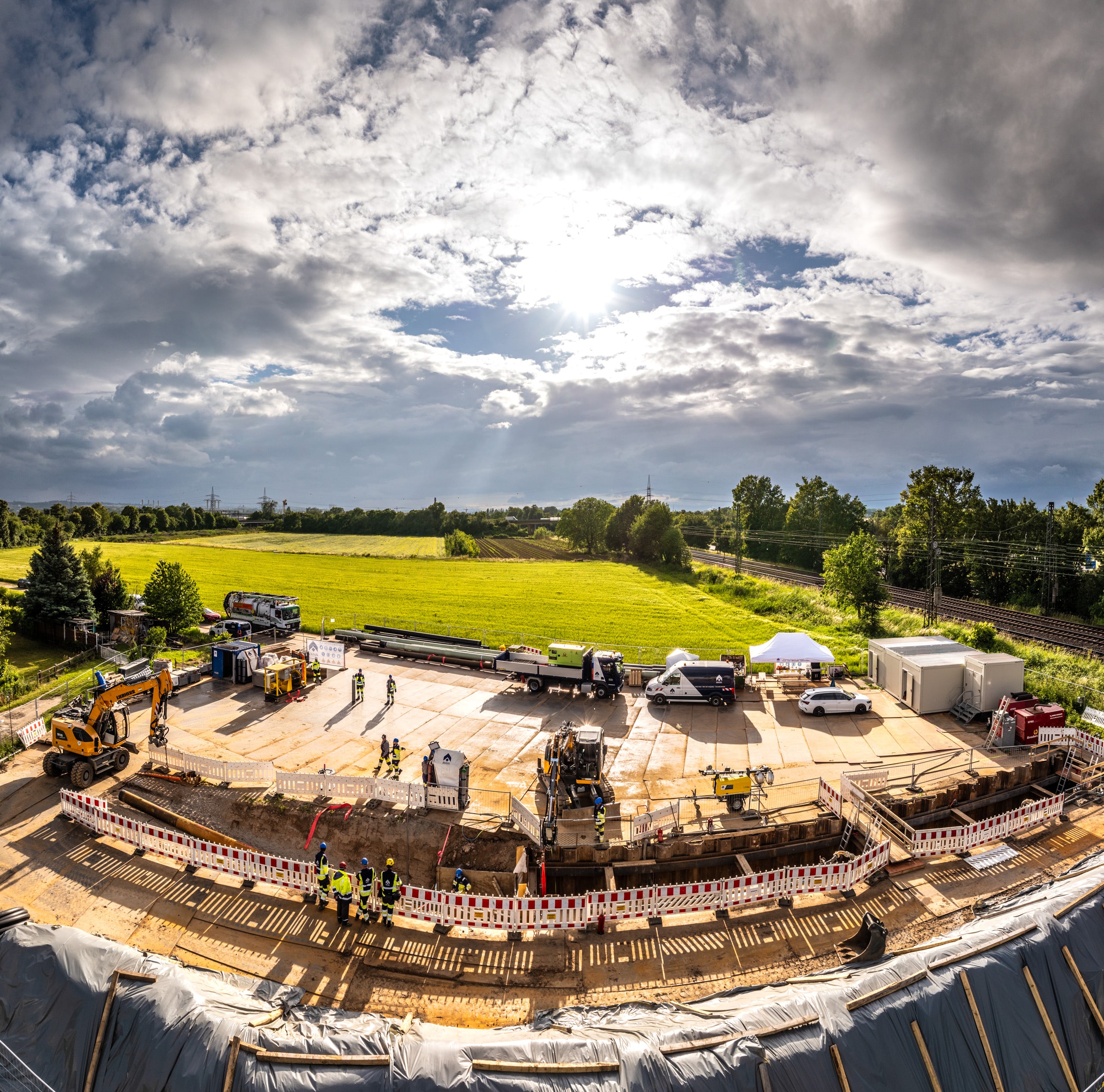 Es sollte ein rund 87 m langer Abschnitt einer im Mantelrohr geführten Produktpipeline erneuert werden. Die Rahmenbedingungen waren anspruchsvoll: Arbeiten unter einer bestehenden Bahntrasse und Bundesstraße, eingeschränkter Zugang zum Mantelrohr und ein hoher Grundwasserspiegel im Dreieck von Rhein und Main.